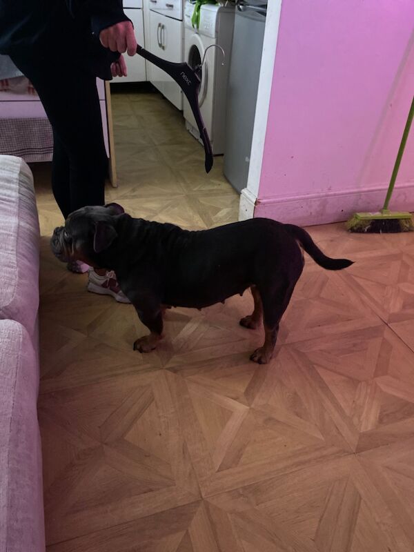 3Old English bull dog new bull breed 3 years old had from 6 weeks old to busy working no time for her always in house need someone who has times preferably retired very calm loving dog good with kids and other dogs it a shame but it for the best for it cruel her lock in house all day She is chocolate and tie blue Paper have parent from top breeders call for more